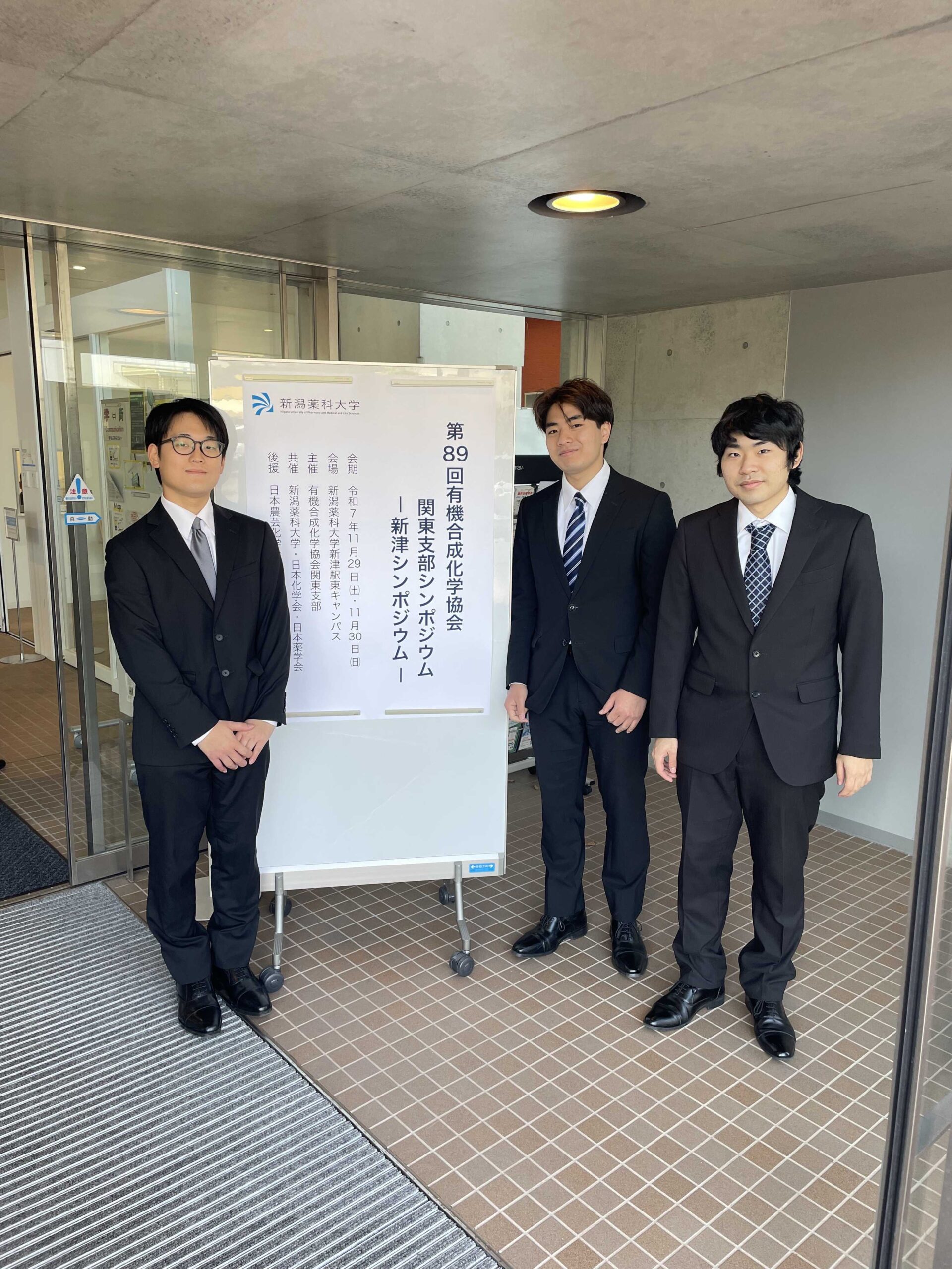 アルバム 第89回有機合成化学協会関東支部シンポジウム−新津シンポジウム− 於新潟薬科大学新津駅東キャンパス (2025.11.29-30) 有合協関東支部シンポジウムにてM2の織茂君、鹿野君、M1の貝原君が発表しました。 織茂君が優秀発表賞を受賞! アルバムに戻る
